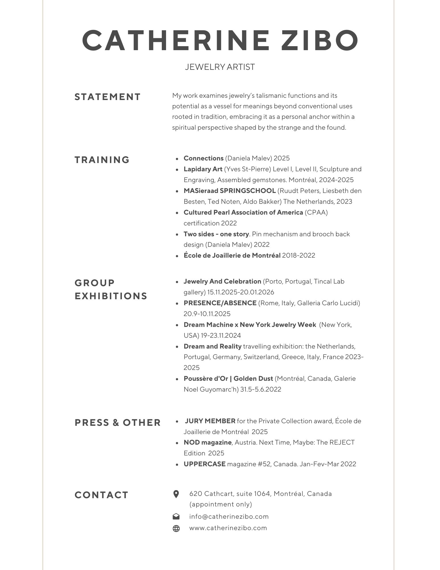 In my artistic practice I reflect upon jewelry’s ability to nourish real-life sensations and interactions, its diverse talismanic functions and its potential as a vessel for meanings and associations. As a devoted art history explorer, I play with symbols, cultural codes and references to be recognized by a viewer – consciously or subconsciously. As a jeweler, I investigate the possibilities of connecting artistic heritage with contemporary urban routines through wearable artifacts.